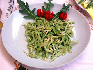 Nel frattempo lessa gli strozzapreti in acqua salata, lasciandoli belli al dente. Una volta cotti, passali in padella con la salsa ottenuta in precedenza e aggiungi il Parmigiano Reggiano e le mandorle.