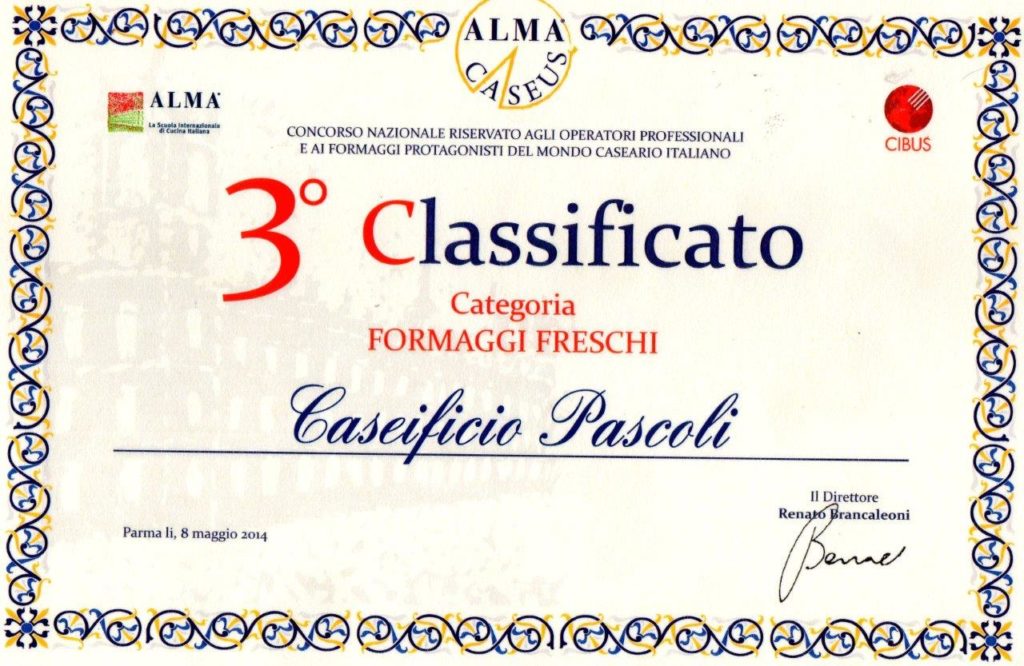 2014 – Concorso nazionale AlmaCaseus, Cibus, Parma; terzi classificati nella sezione freschi, primo squacquerone di Romagna Dop in Italia.