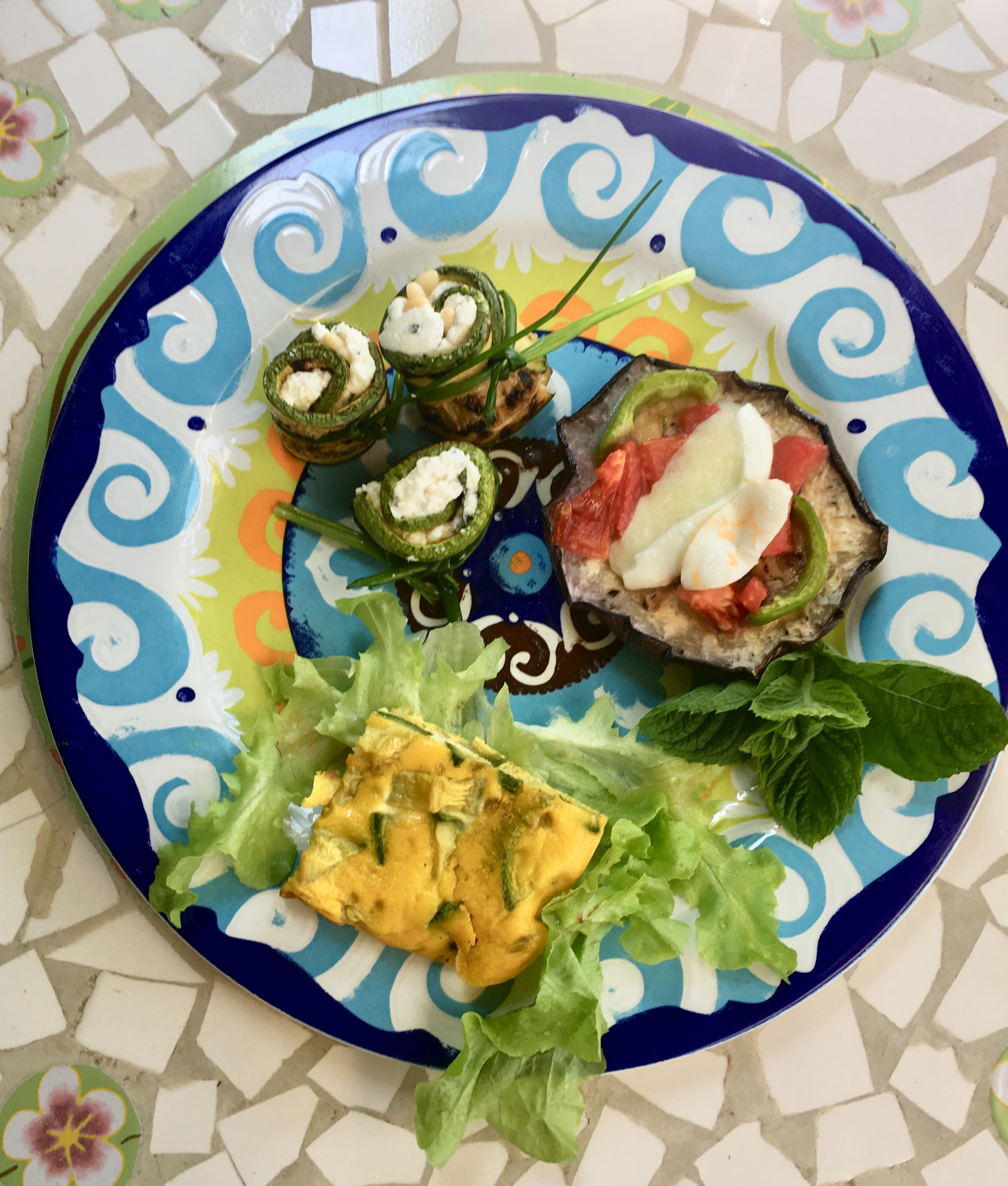 La ricetta che oggi vi racconto è di facile eseguzione ed ideale per le calde giornate  e serate estive. Profuma di menta e erba cipollina, è una pietanza delicata grazie alla squisita Nuvola di Latte del Caseificio Pascoli, la ricotta bunissima che ogni giorno producono in azienda e che volendo può esere sostituita anche da una ricotta di capra che conferirà alle zucchine un tono più deciso in termini di gusto. Nel piatto in fondo vedete come ho servito l’involtino di zucchina, insieme ad una frittatatina di fiori di zucca e ad una melanzana grigliata e farcita con bufala, pomodorini e basilico(leggermente tostata in fosrno). Un antipasto fresco e ideale per l’estate da abbinare ad un vino bianco e molto molto fresco.